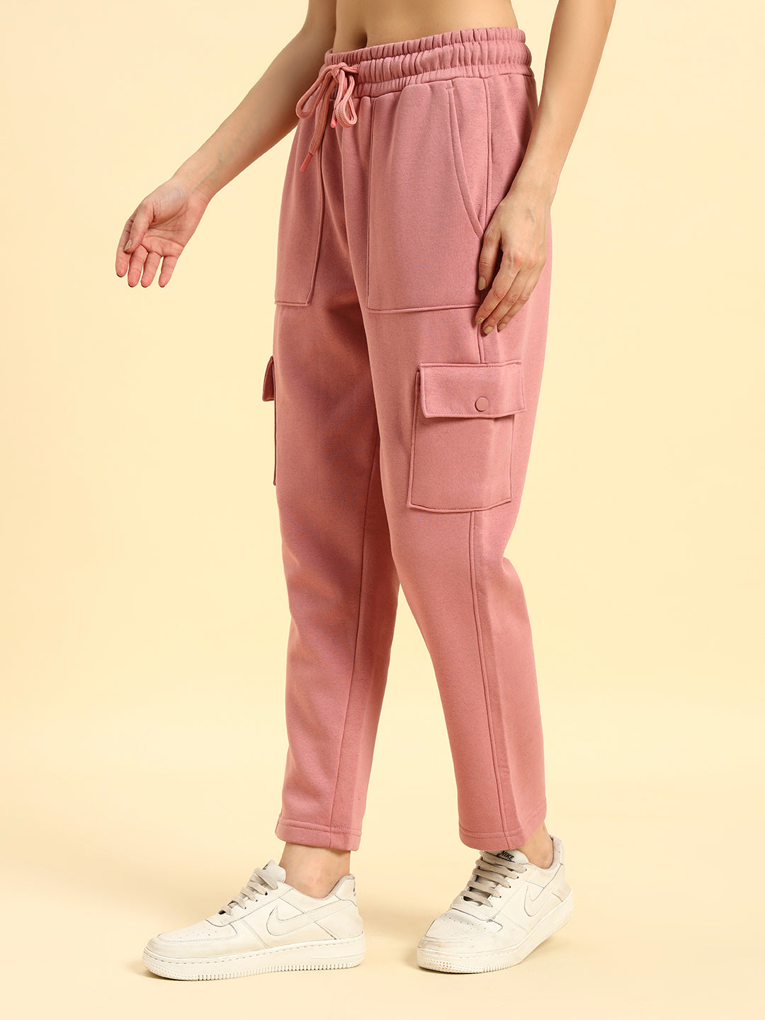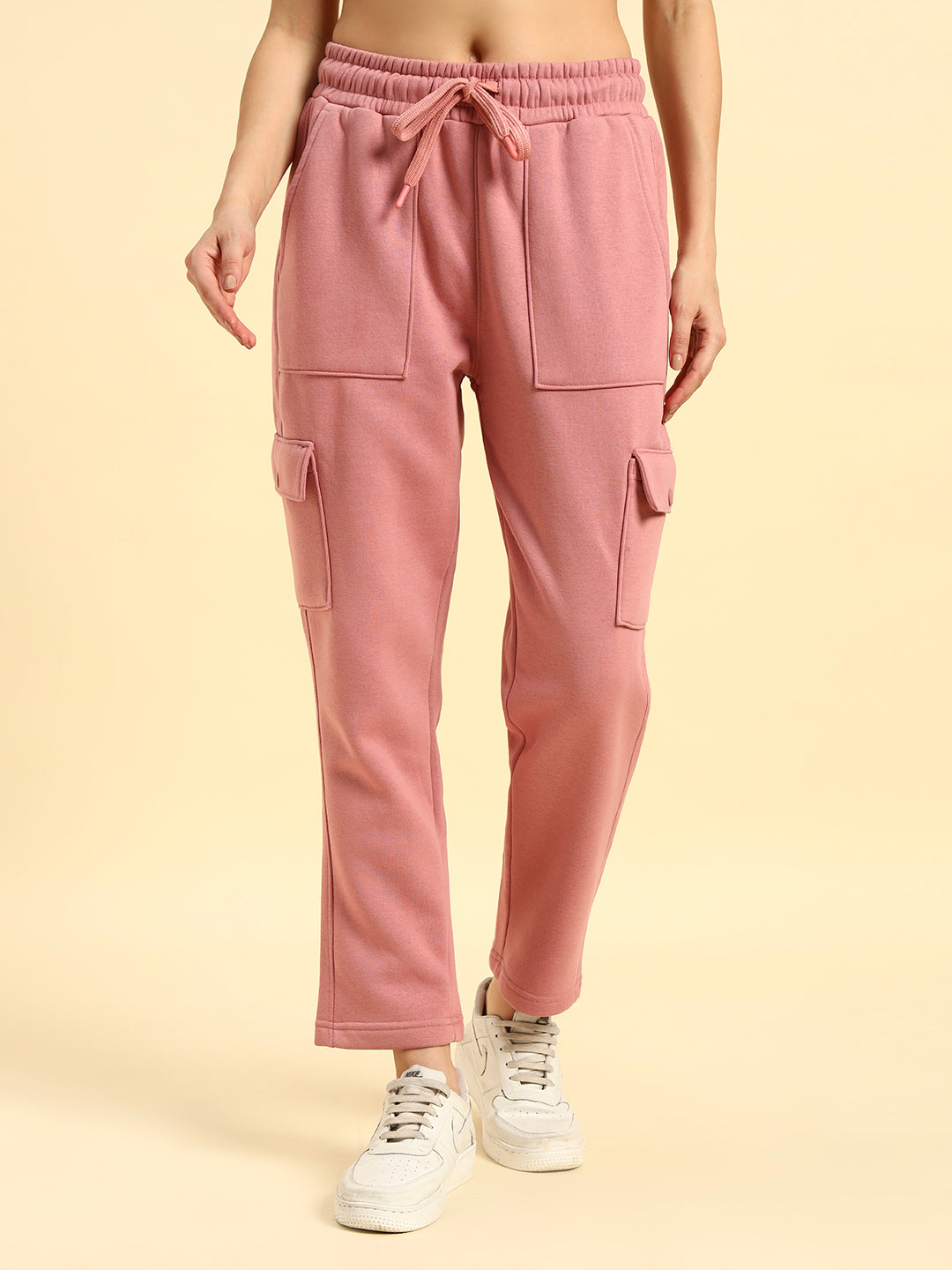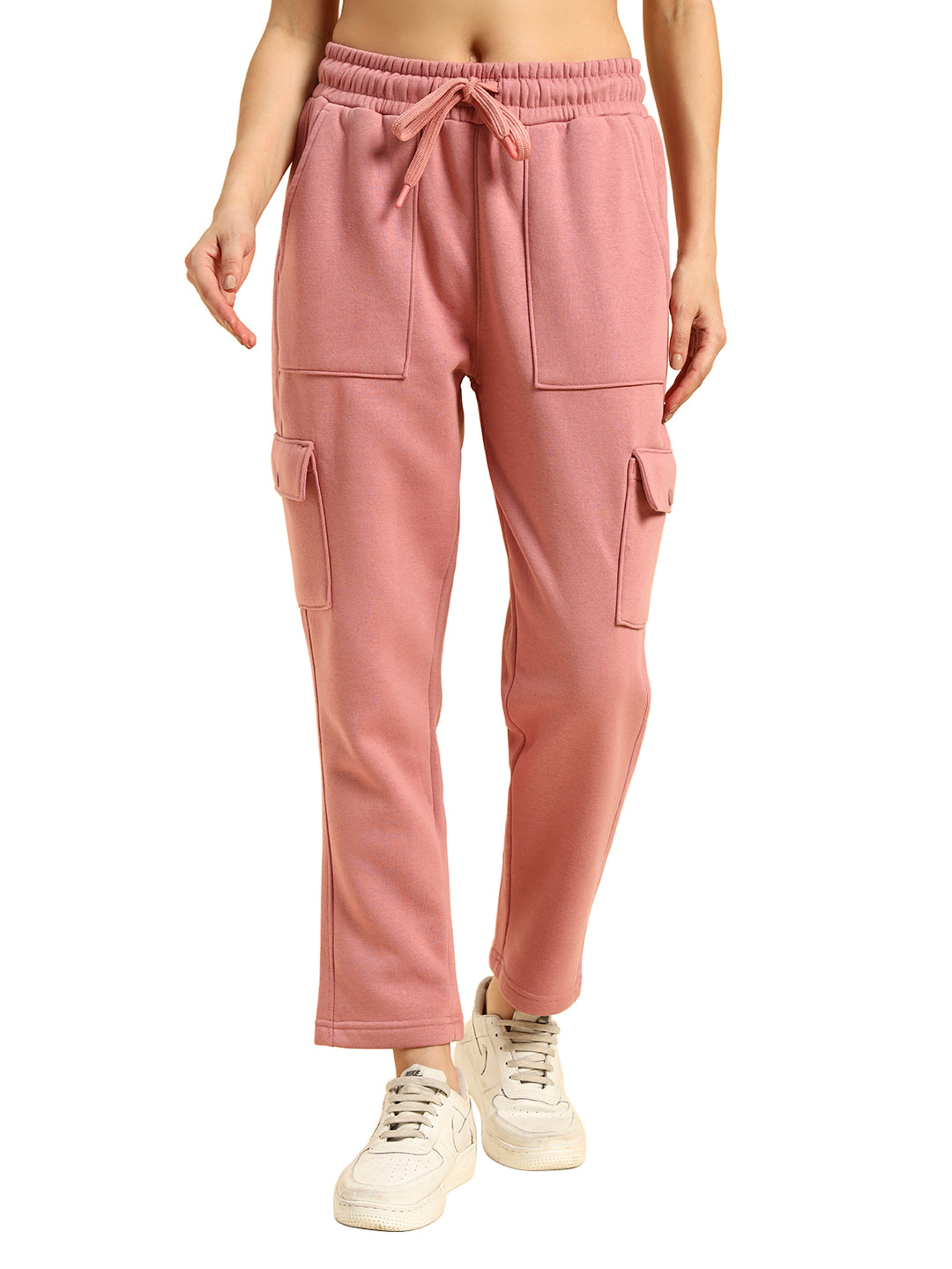 Track Pants for Women | Breathable & Soft with Color Fastnes Regular Fit Fleece Fabric Solid Pattern Drawstring Closure