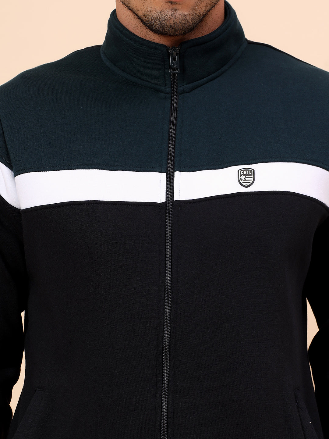 Track Suit for Men | Winter Wear Mock Collar with Full Zipper Upper Poly Cotton Fabric Colour Block Pattern