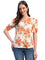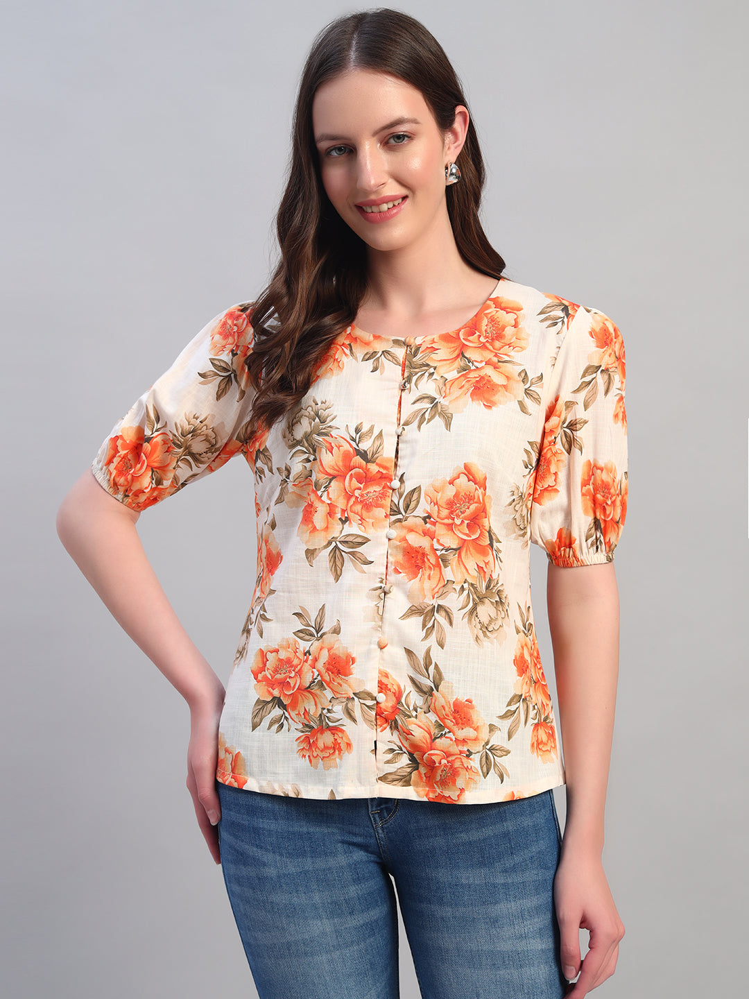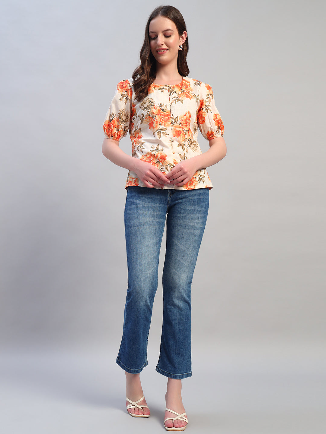 Women Orange Printed Round Neck Half Sleeves Casual Top