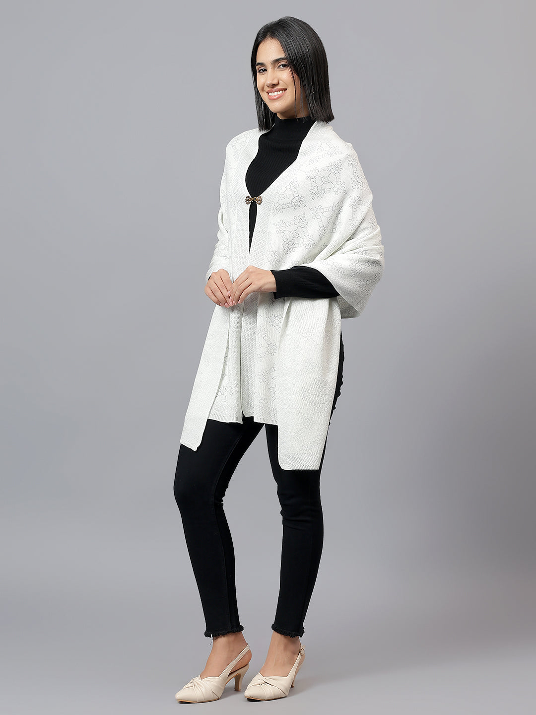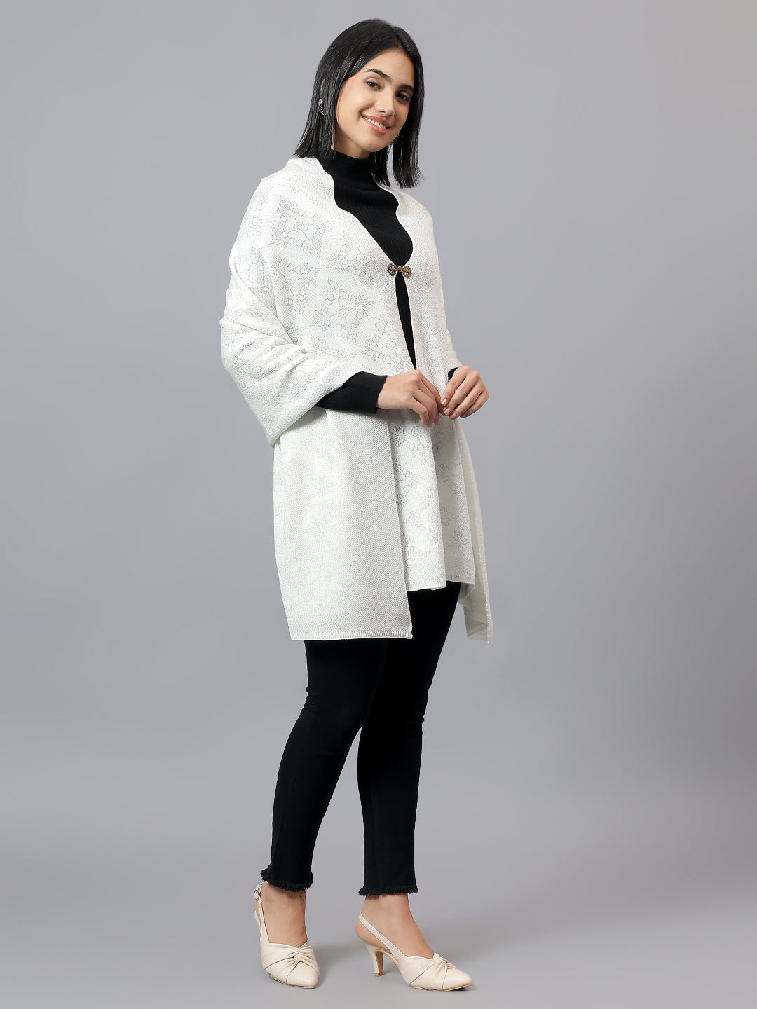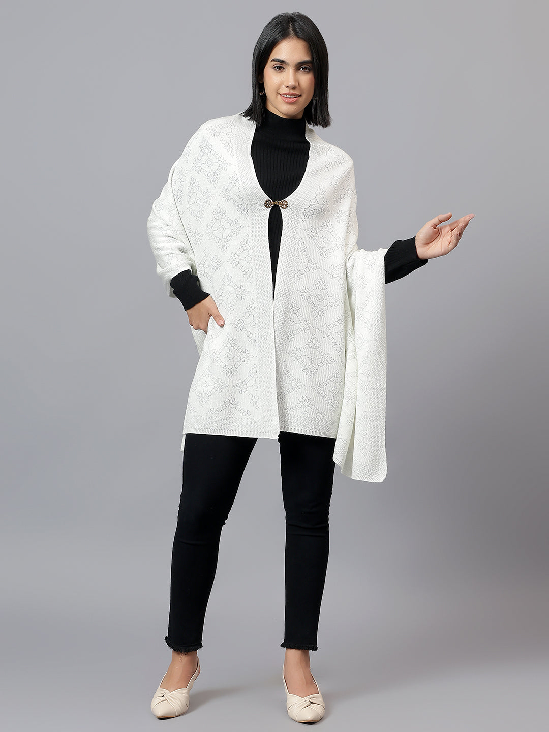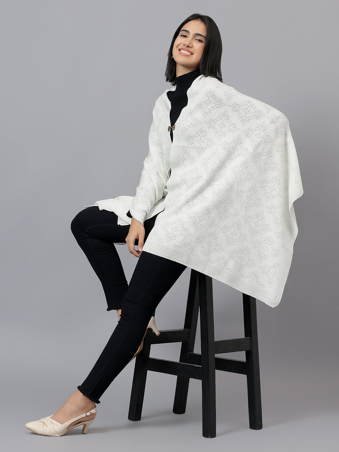 Women's Casual Ivory Jacquard Stole