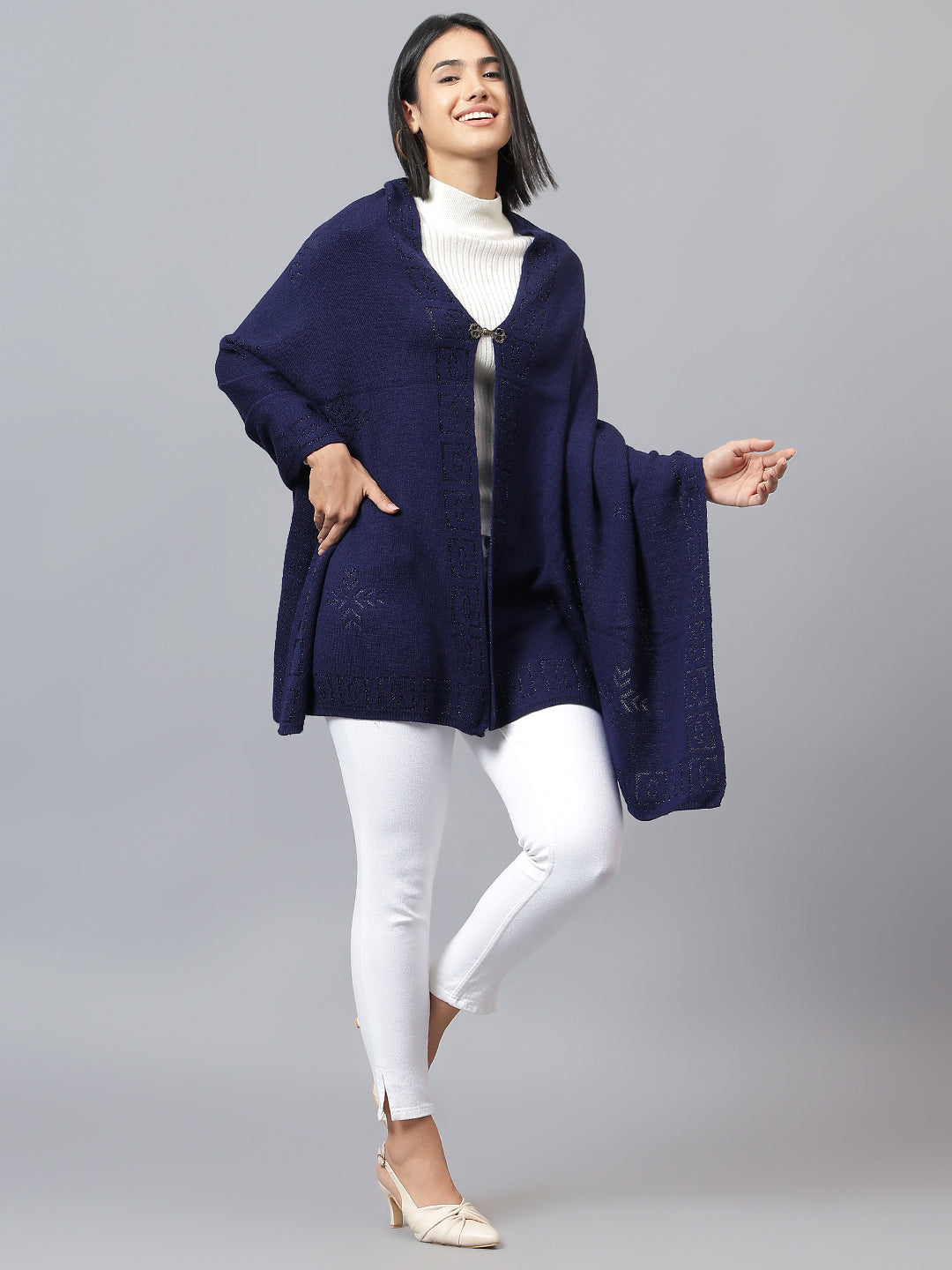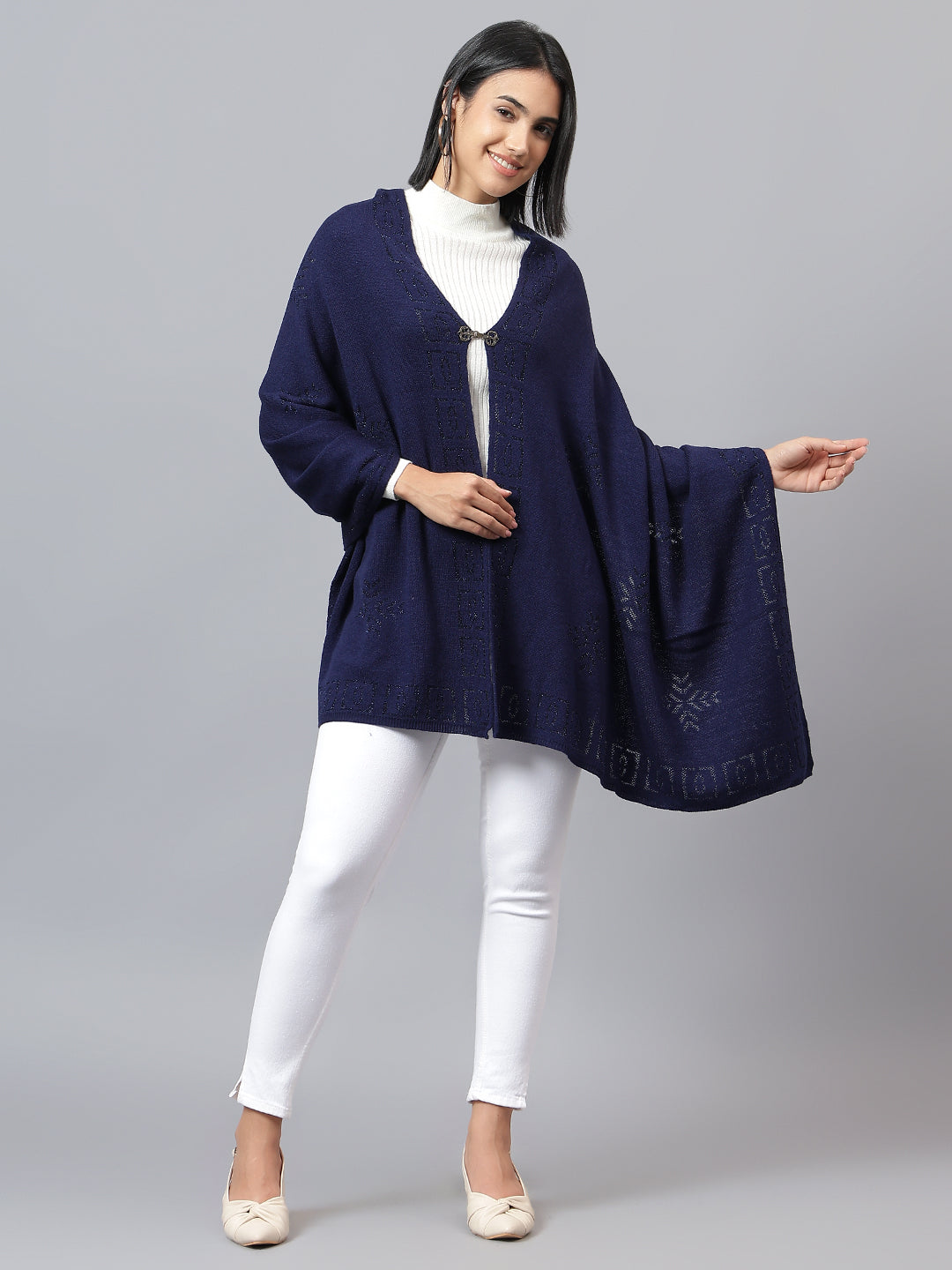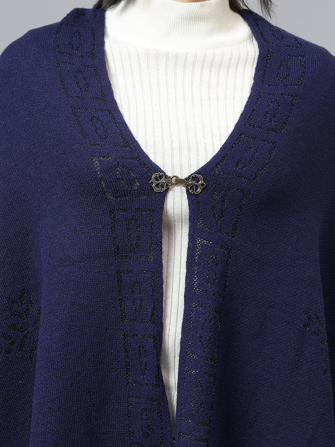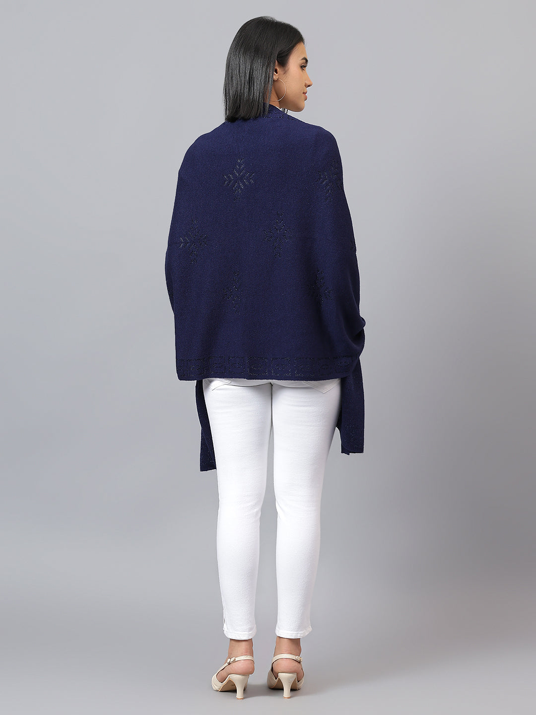 Women's Casual Navy Jacquard Stole