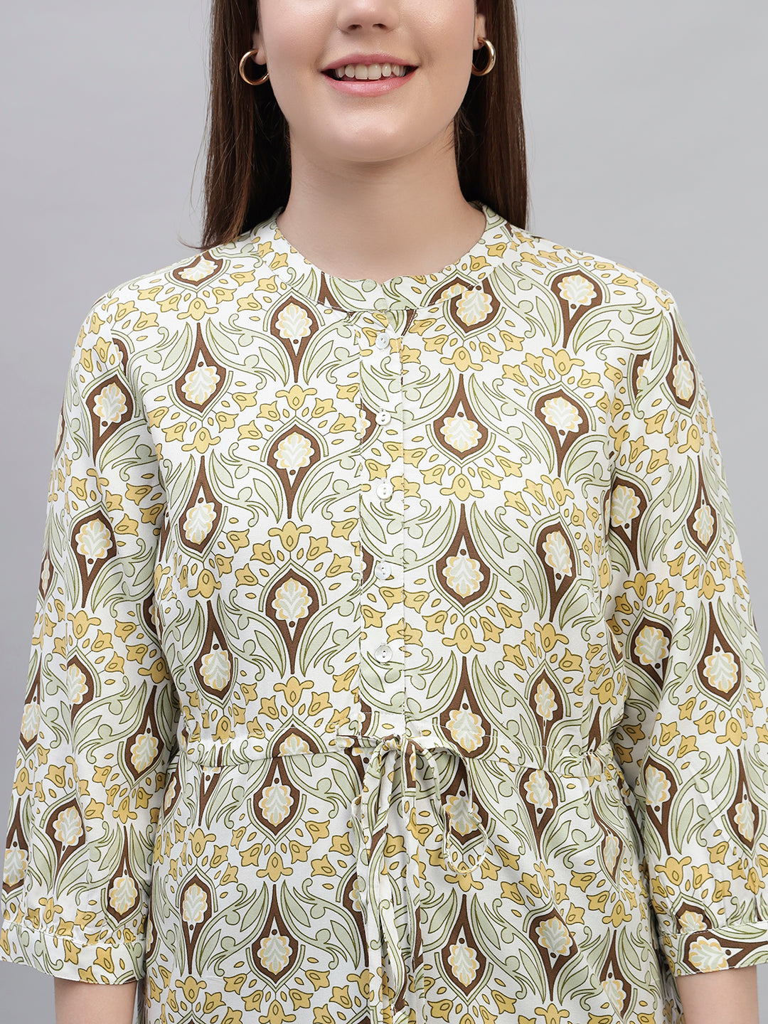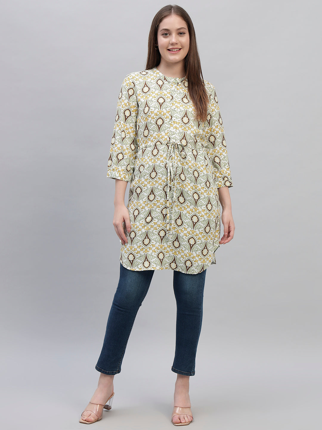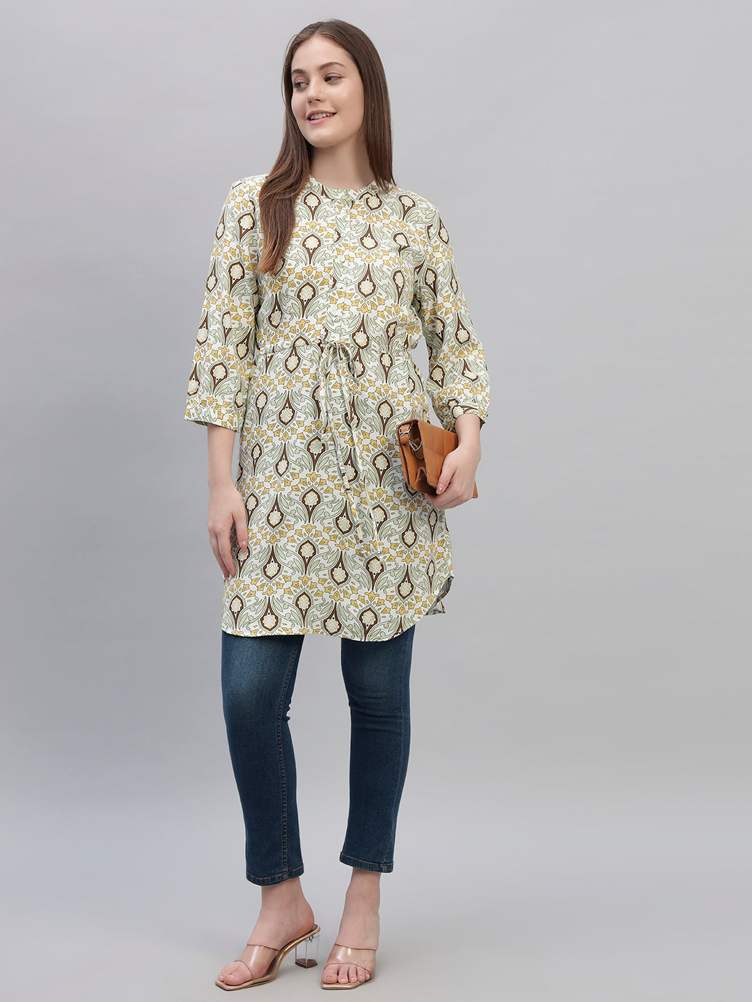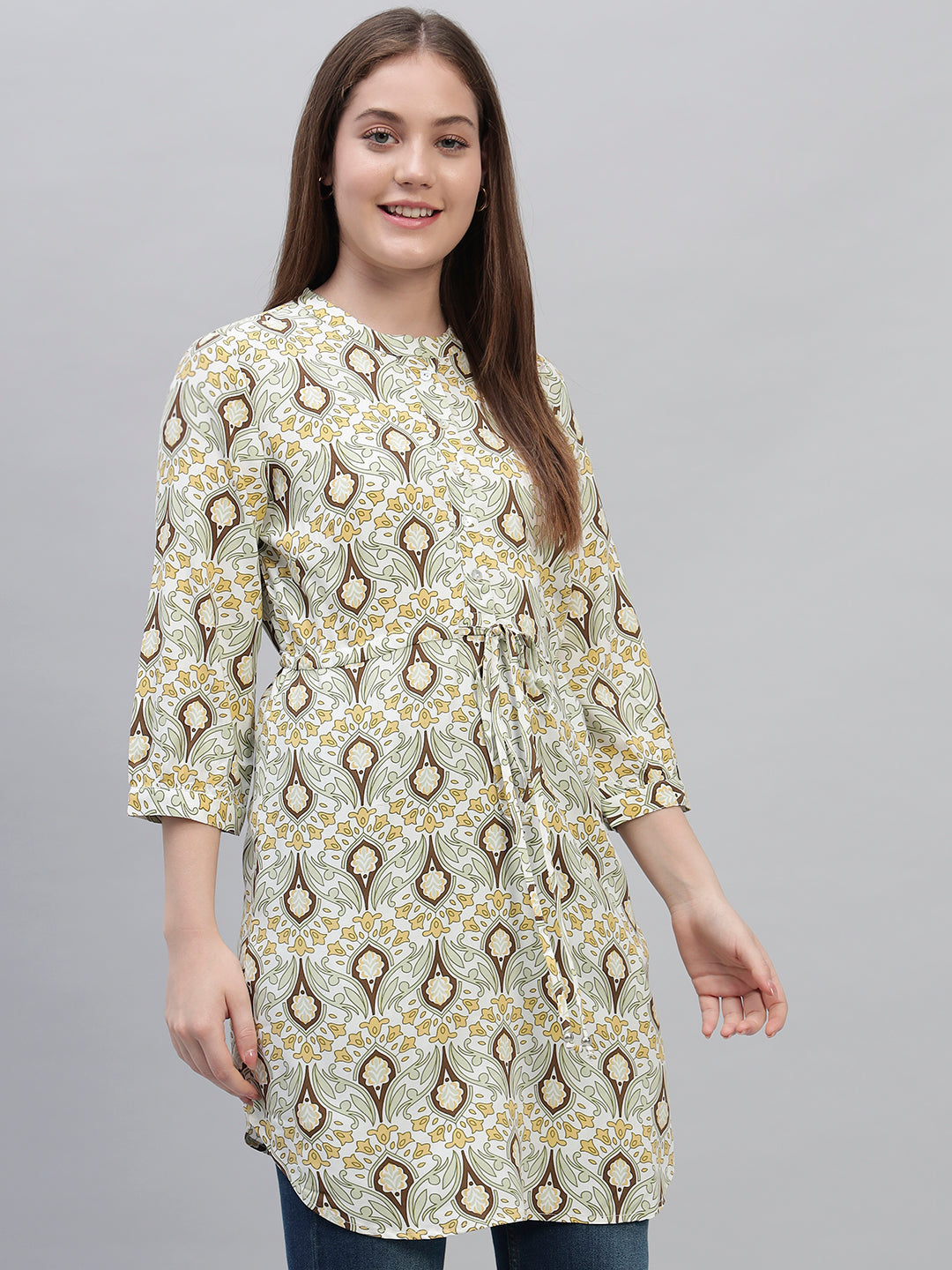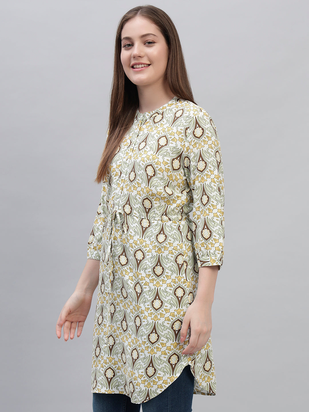 Women's Green Printed 3/4th Sleeves Round Neck Casual Long Tunic