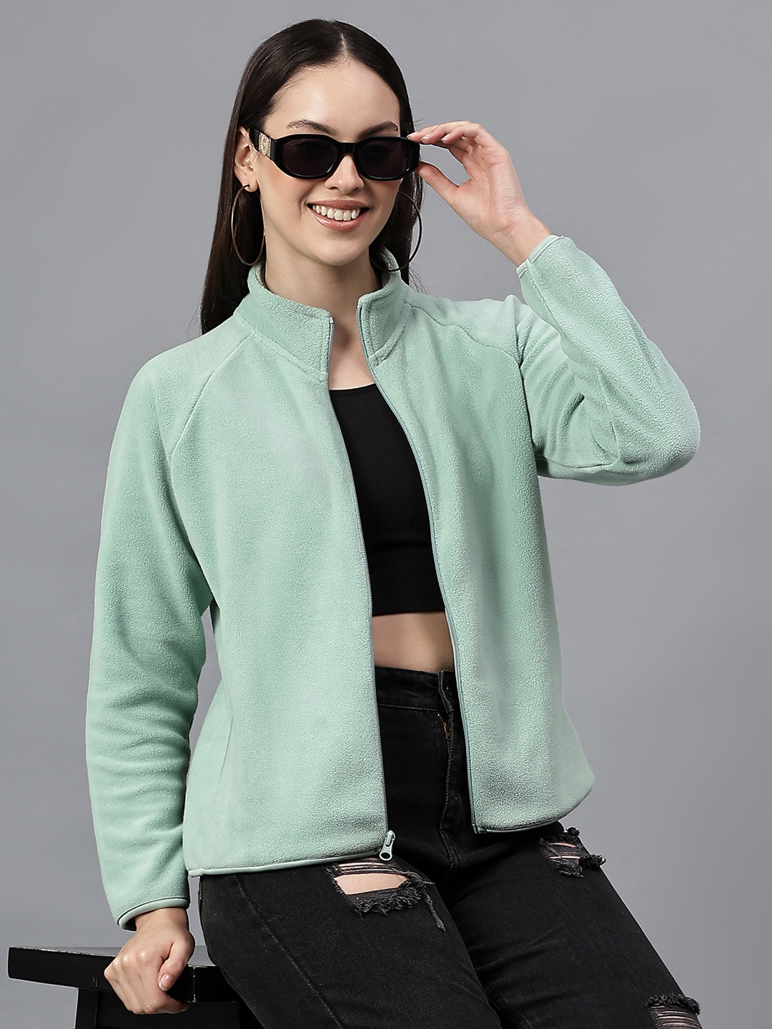 Women's Mint Solid Mock Collar Full Sleeves Casual Sweatshirt