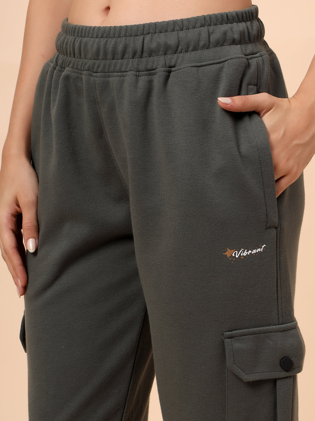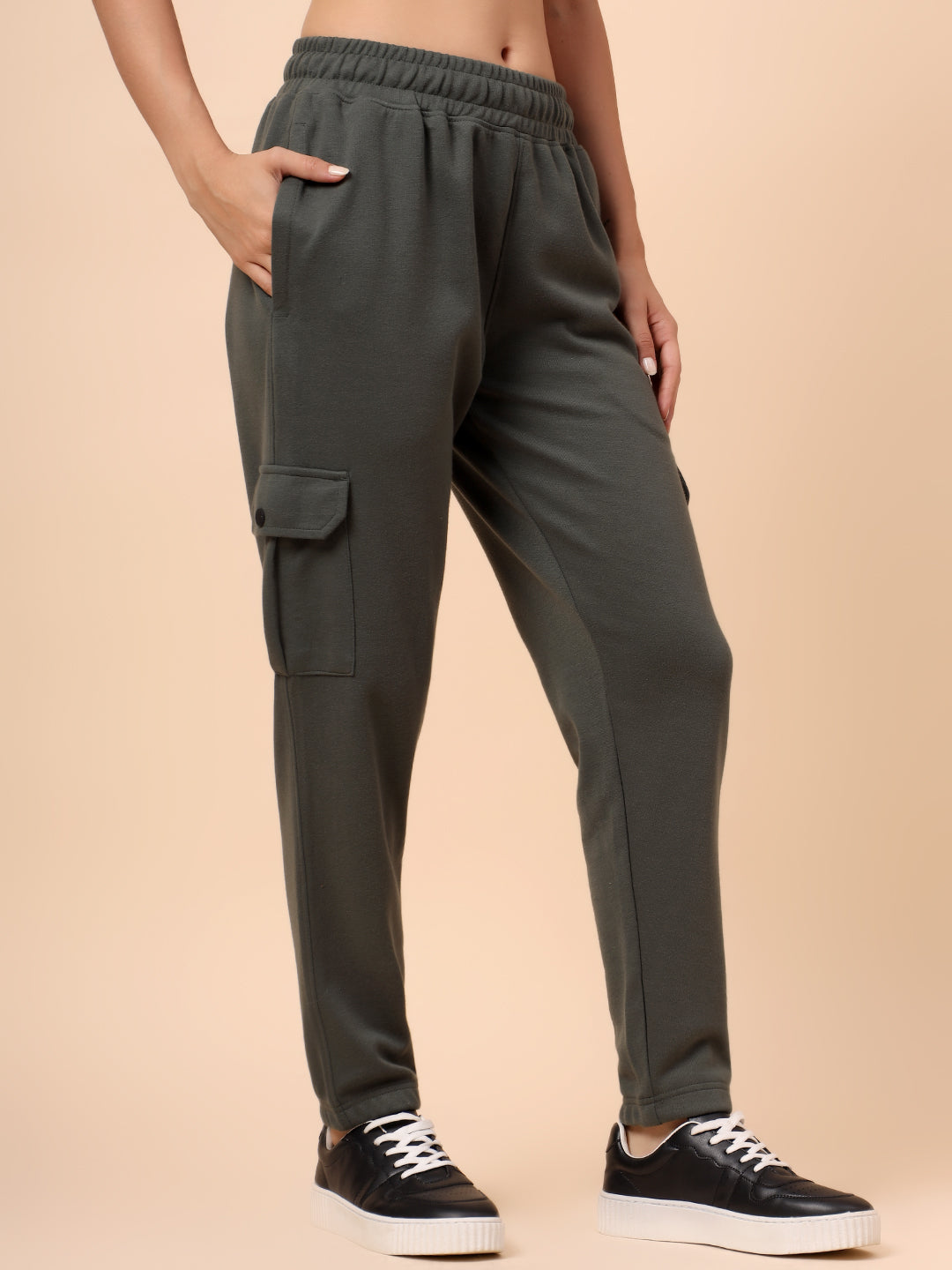 Women's Olive Green Solid Regular Fit Casual Cargo