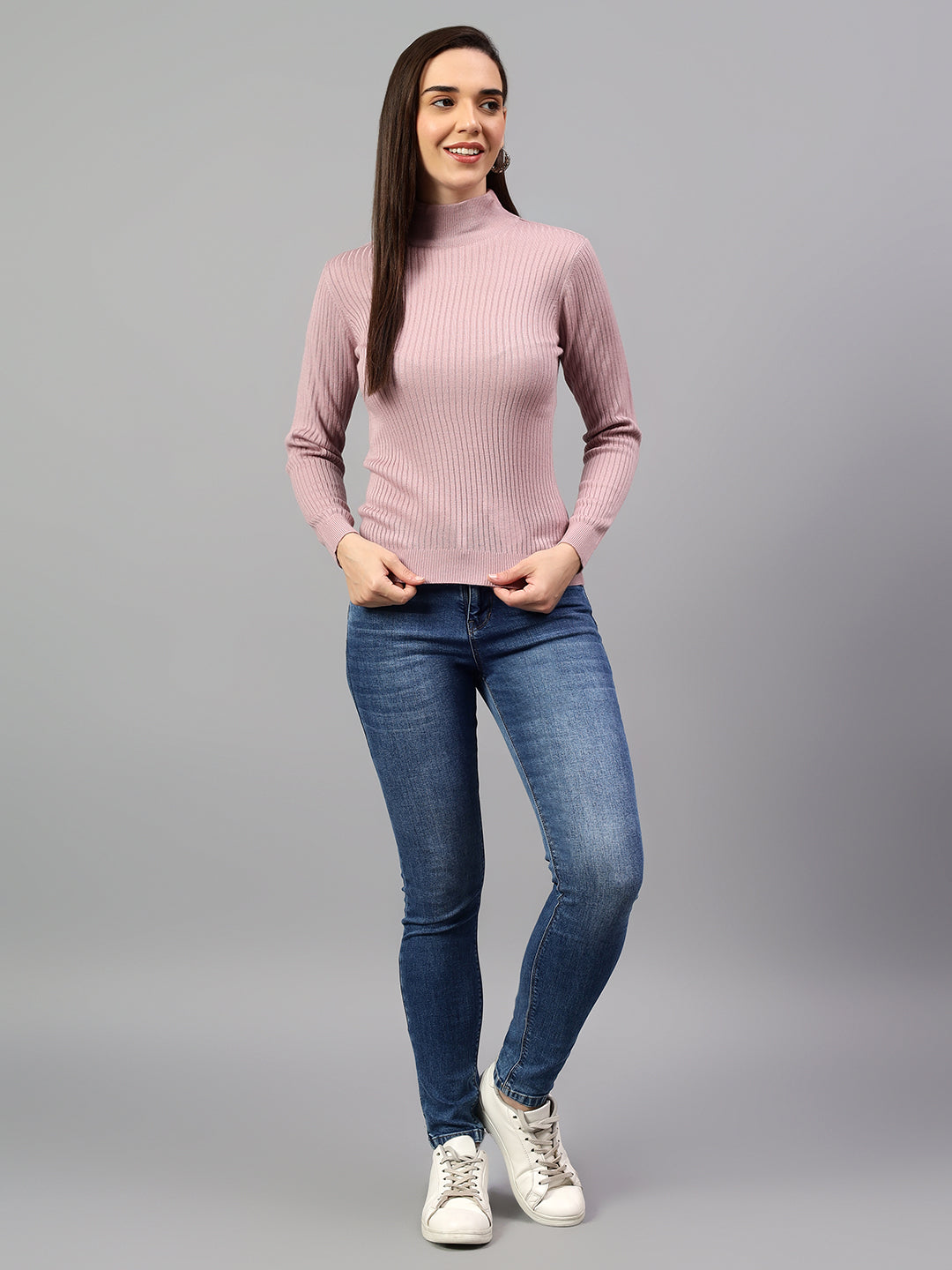 Experience elegance and sophistication with our Women's Pink Self Design High Neck Skeevi. The intricate design and high neck complement the bold black color, giving you a stylish and confident look. Perfect for any occasion, this top will elevate your wardrobe and make a statement.