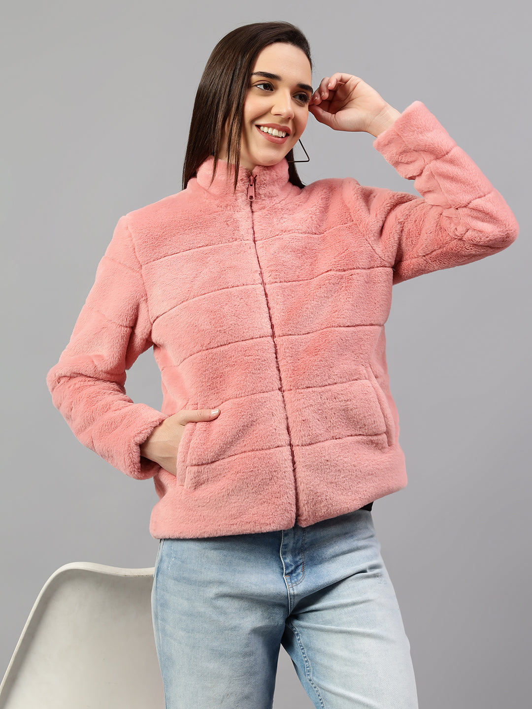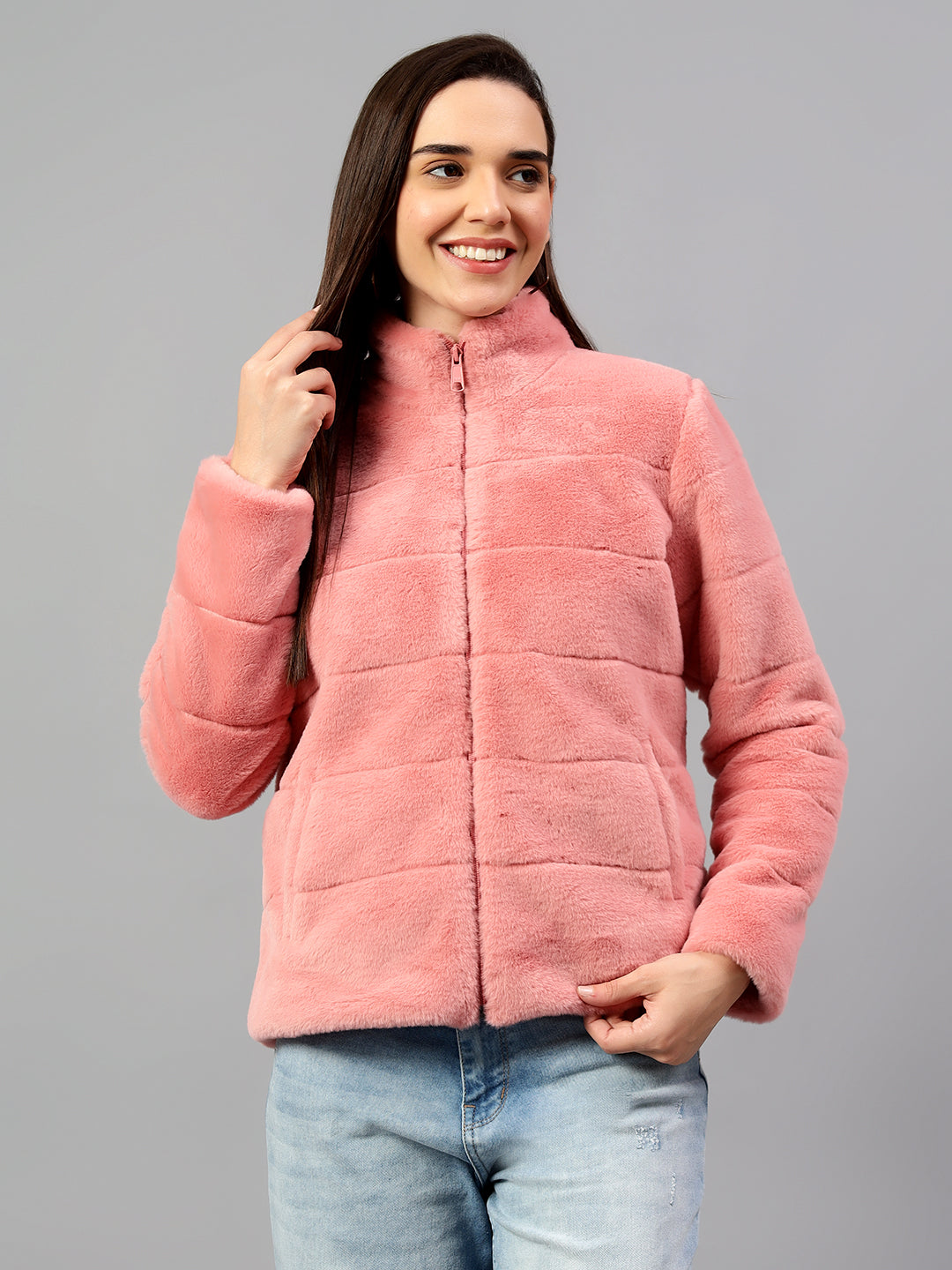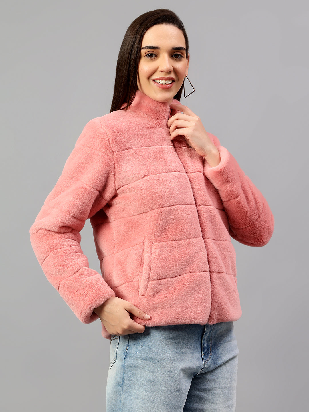 Slay your Winter Fashion game with our Pink color Faux Fur jacket. This jacket is made up of finest Poly Blend stretch fabric which offer the perfect blend of style and warmth. Featuring a Standing collar, full sleeves, Zipper closure with styled zipper pockets makes it perfect for office, travel or for a casual day which gives you all day comfort & fashion. Dry clean only.