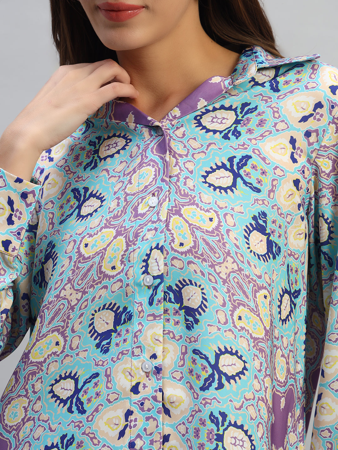 Women's Printed Multi Shirt Collar Full Sleeves Co-ord-Set