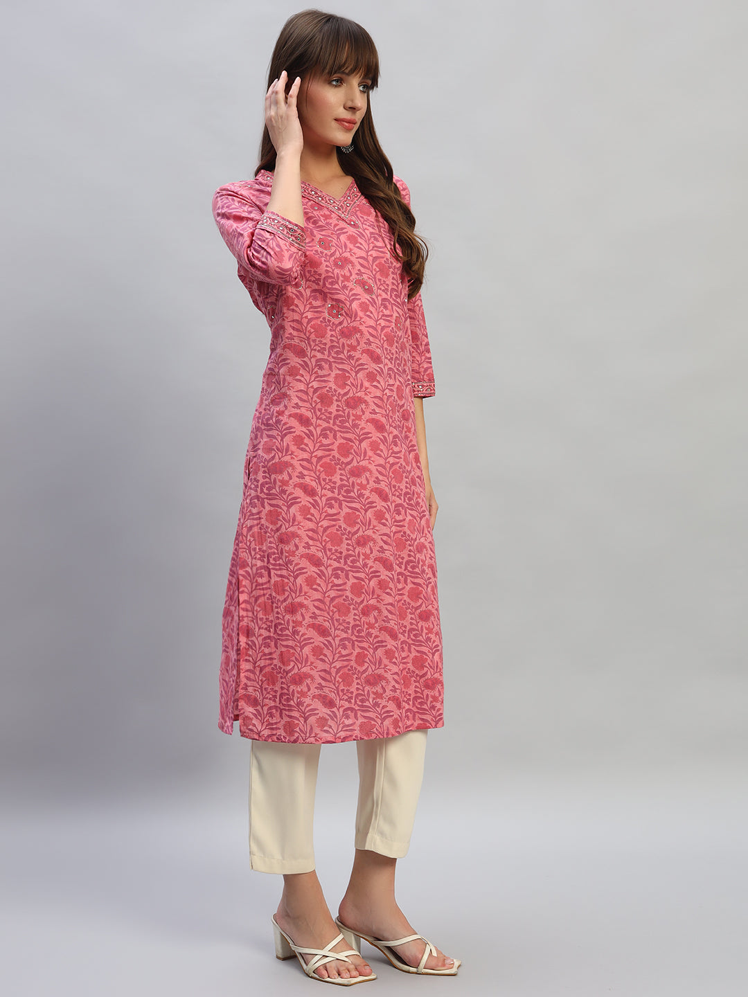 Women's Printed Onion V-Neck 3/4th Sleeves Casual Kurti