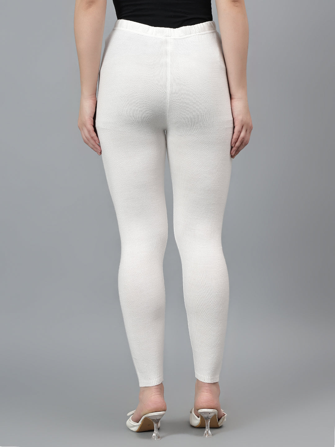Women's Regular Fit Solid Off White Flat Front Mid Rise Kurti Pant