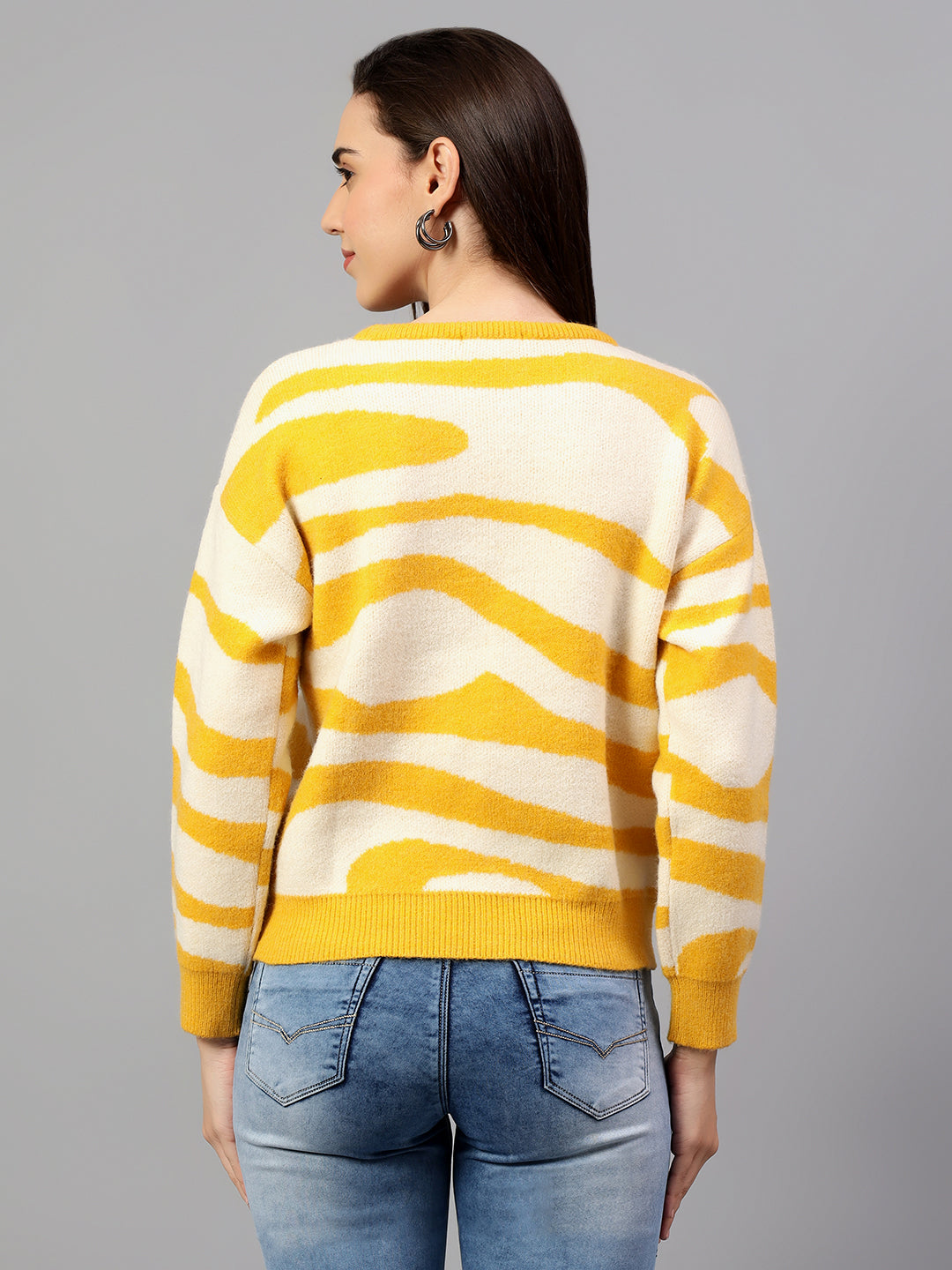 Women's Self Design Yellow Full Sleeve Casual Sweater