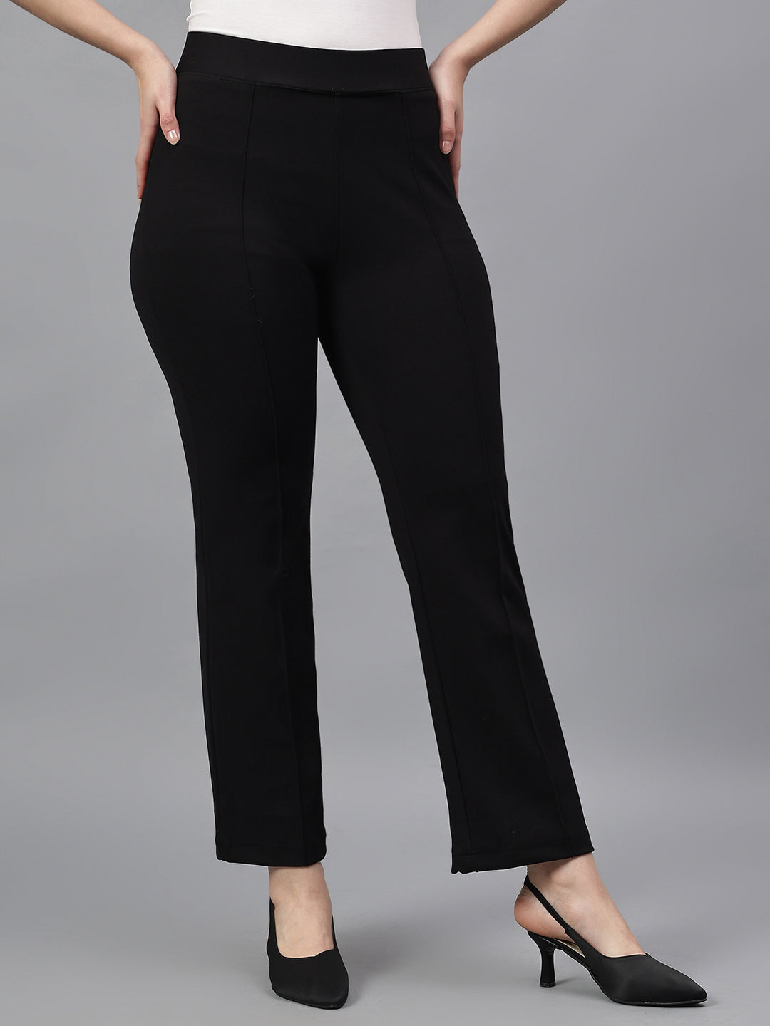 Women's Solid Black Regular Fit Casual Jegging