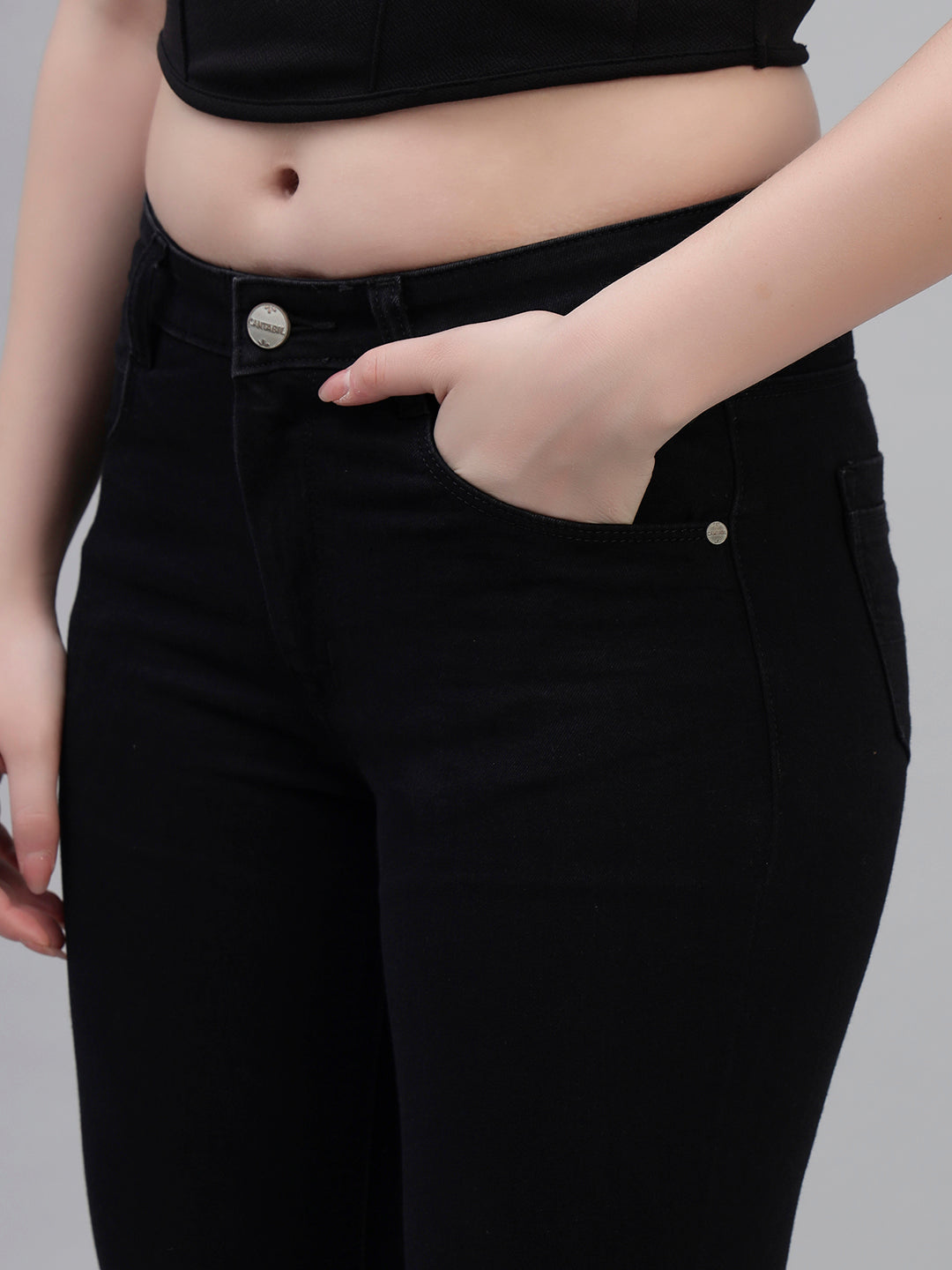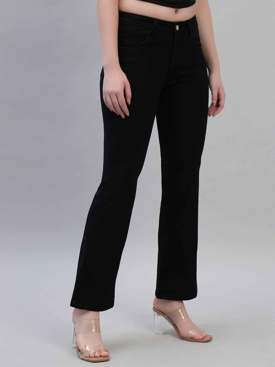 Women's Solid Denim Black Full Length Regualr Fit Casual Jeans