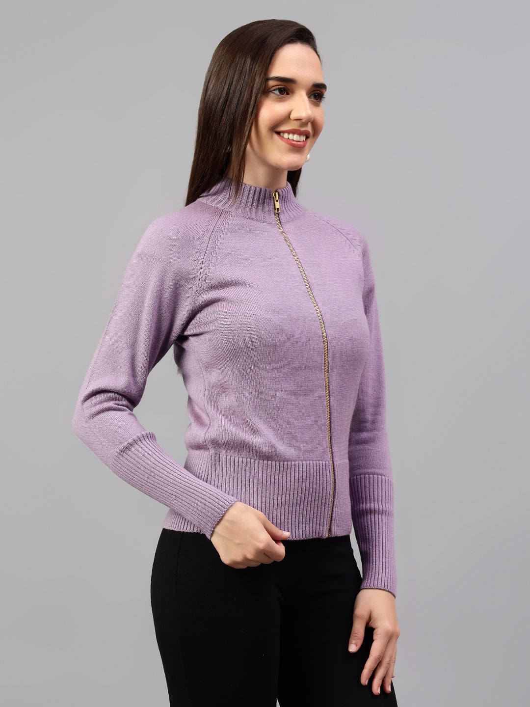 Women's Solid Lavender Full Sleeve Casual Sweater