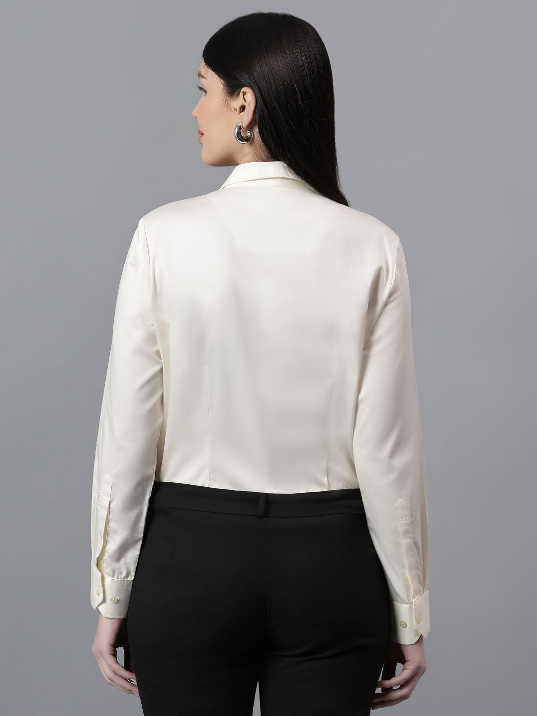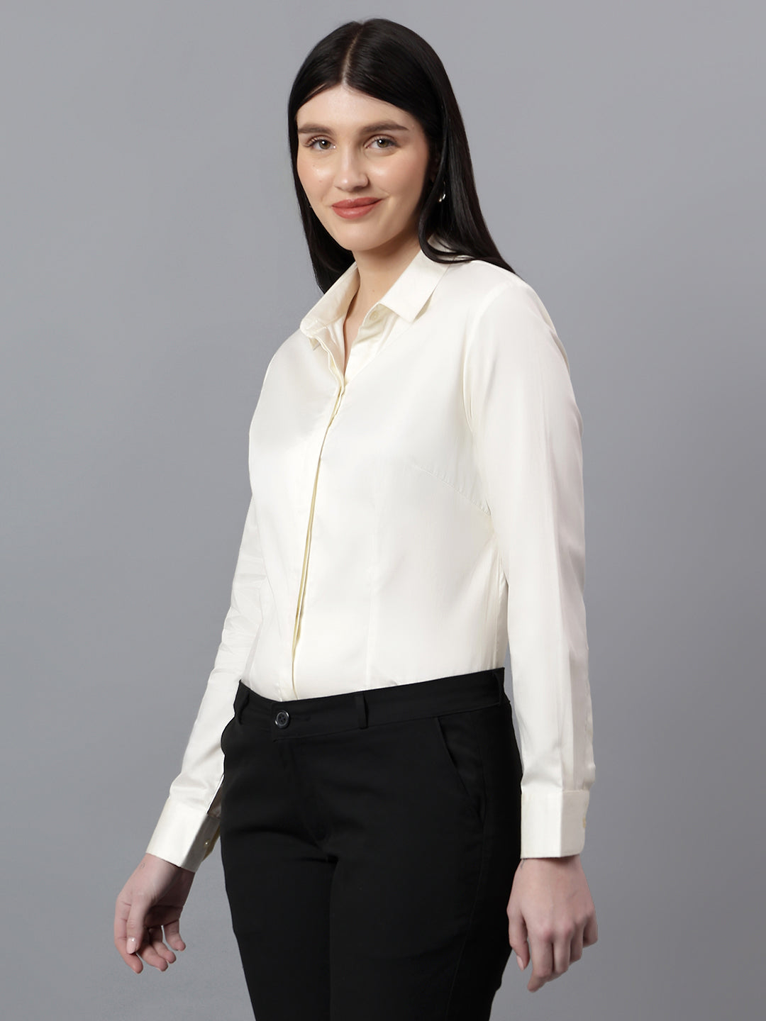 Women's Solid Off-White Spread Collar Full Sleeves Formal Shirt