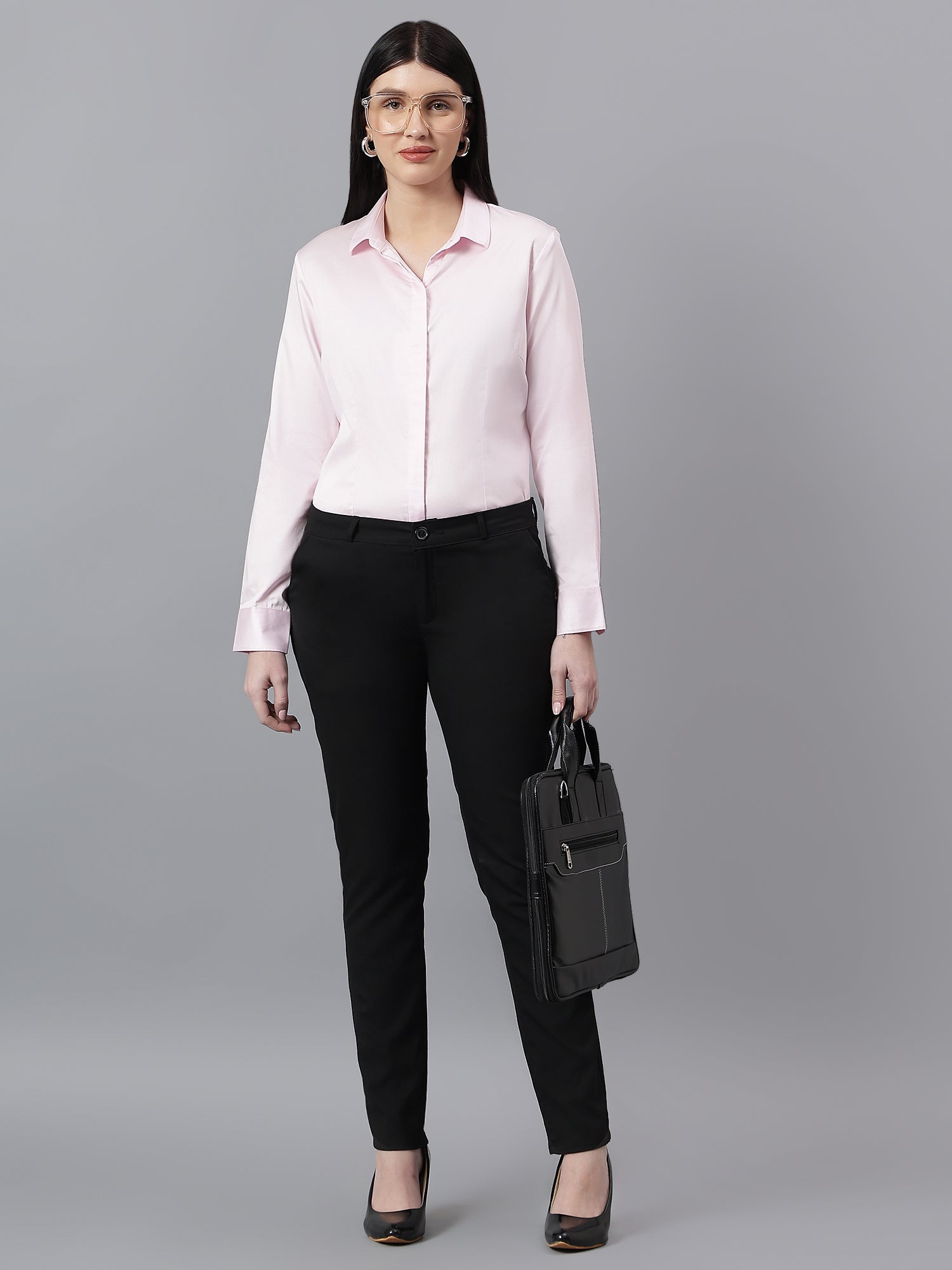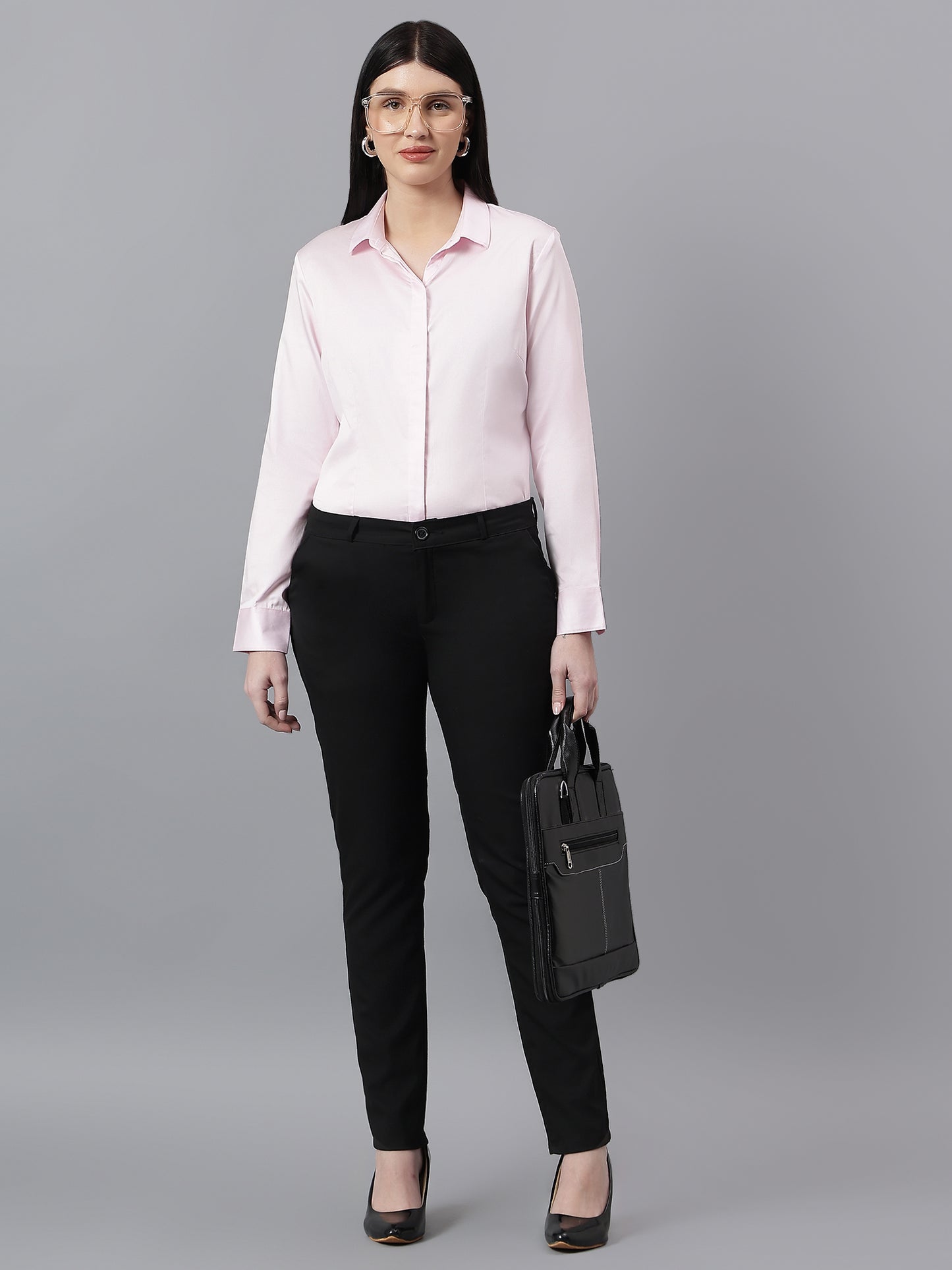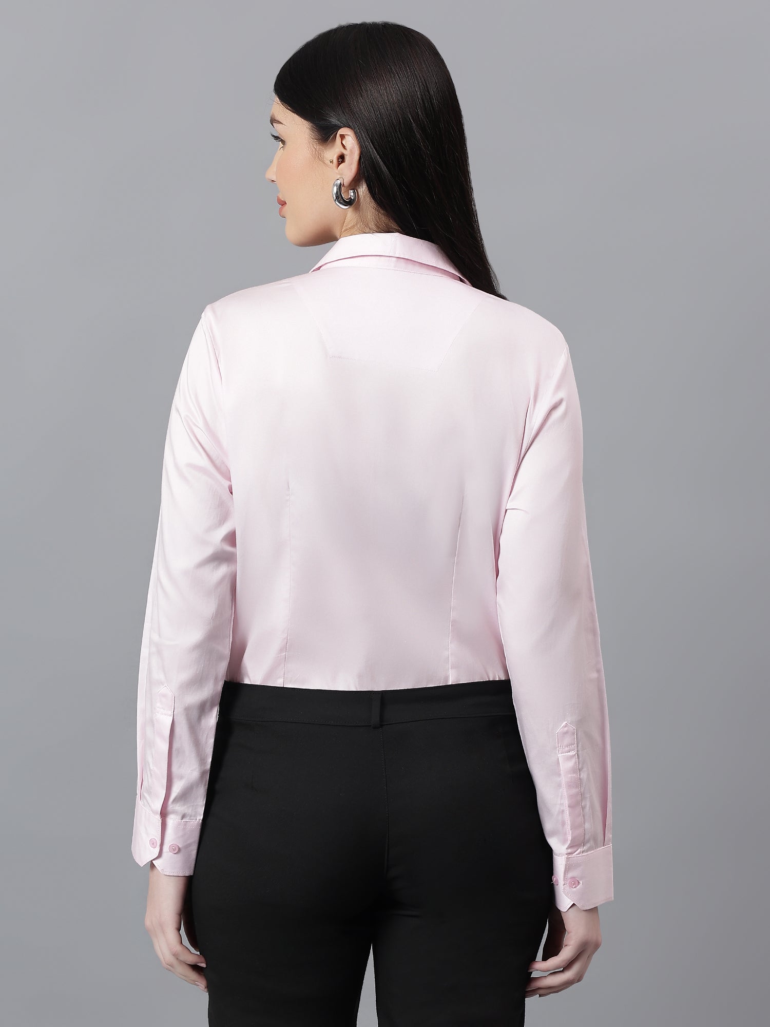 Women's Solid Pink Spread Collar Full Sleeves Formal Shirt