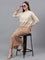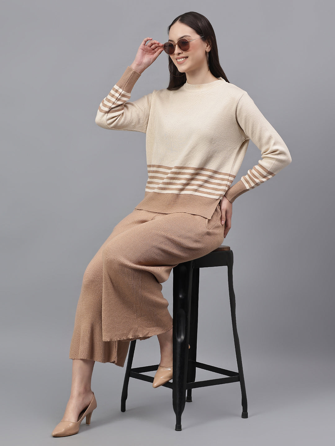 Women's Striped Ivory Round Neck Full Sleeves Co-Ord-Set
