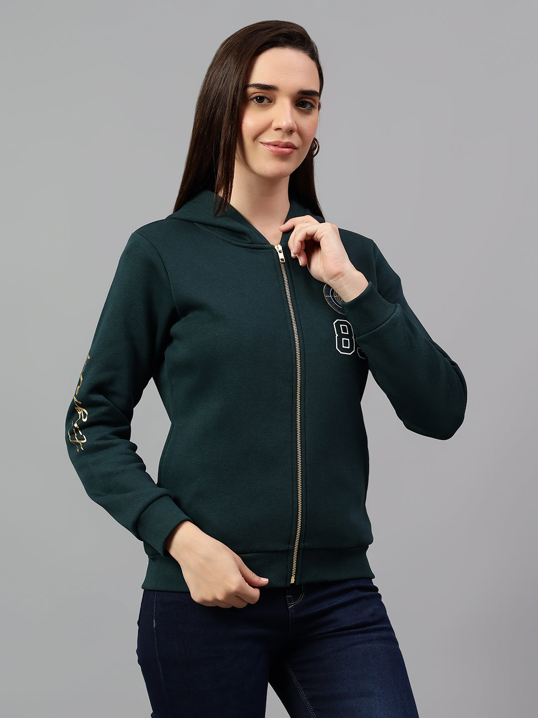 Women's Teal Green Printed Hoody Neck Sweatshirt